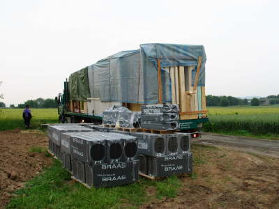 und ab auf den Stellplatz. Die Dachziegel waren irgendwann im Laufe des Tages geliefert worden. Natürlich genau dahin, wo sie jetzt im Weg liegen.