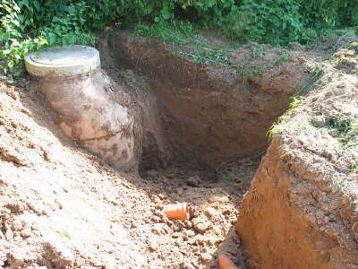 Die Anschlüsse am Kontrollschacht und fürs Regenwasser sind vorbereitet