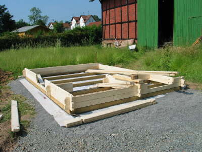 Endlich! Nachdem am letzten Samstag alles buchstäblich ins Wasser gefallen war, haben wir heute einen Super-Sonnentag und können anfangen. 10Uhr30 in Deutschland..das Gartenhaus wächst....