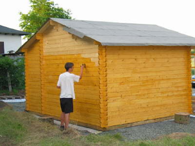 Sascha gibt der Sache noch den letzten Schliff. Das mit der Teerpappe bleibt nicht so. Sieht irgendwie blöd aus, hilft aber erst mal gegen den Regen. Nur nicht hetzen, gelle!