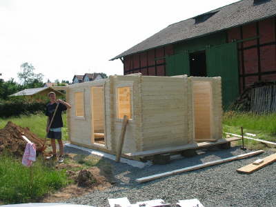 mittlerweile ist es 16 Uhr. Die Aussenwände sind fertig. Jetzt kommt der schwierige Teil....